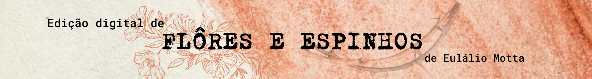 Esta plataforma foi desenvolvida por Tainá Matos Lima Alves Boaventura como parte integrante do projeto de doutorado, intitulado Hiperedição do livro Flôres e espinhos de Eulálio Motta, vinculado ao Programa de Pós-Graduação em Estudos Linguísticos, da Universidade Estadual de Feira de Santana (UEFS). Trata-se de uma publicação com propósitos estritamente acadêmicos e sem fins lucrativos. Em atendimento às exigências da Lei 9.6110/98 e do parágrafo 4º do Artigo 184 do Código Penal, o responsável por este projeto coloca-se à disposição, através do e-mail: floreseespinhos2024@gmail.com para dirimir qualquer dúvida referente à eventual violação de direitos autorais, comprometendo-se desde já, a retirar do projeto qualquer documento que fira direta ou indiretamente os direitos de qualquer pessoa.